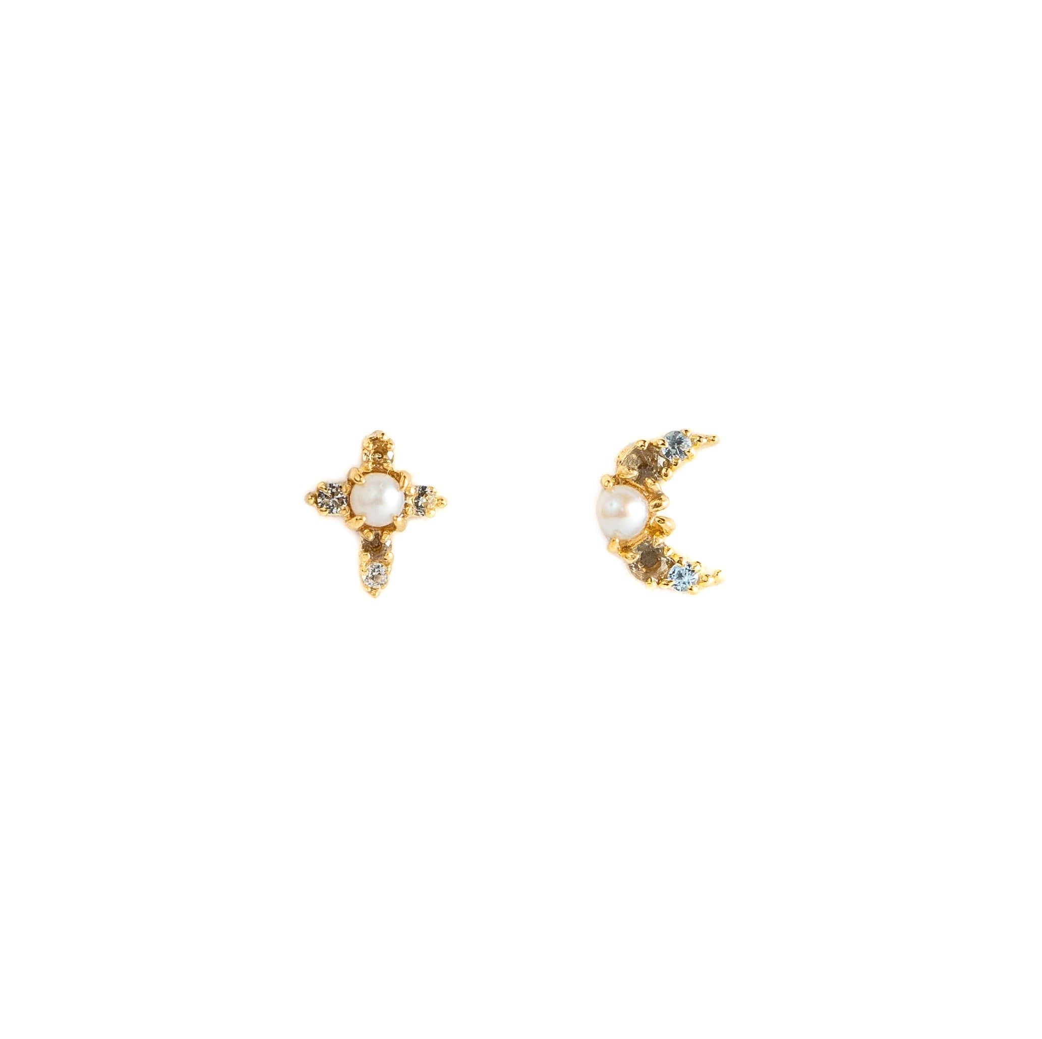 - Size: 7x7mm the moon stud, 5x7mm the star stud