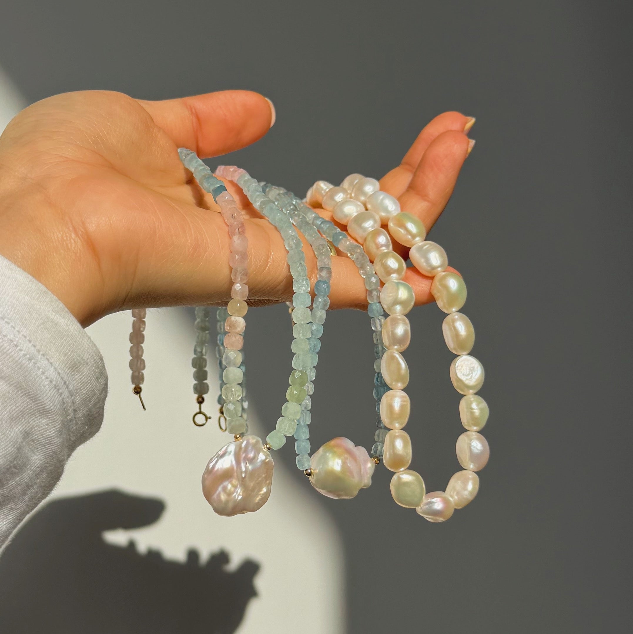 playful gemstone & pearl necklaces full of colour and light.