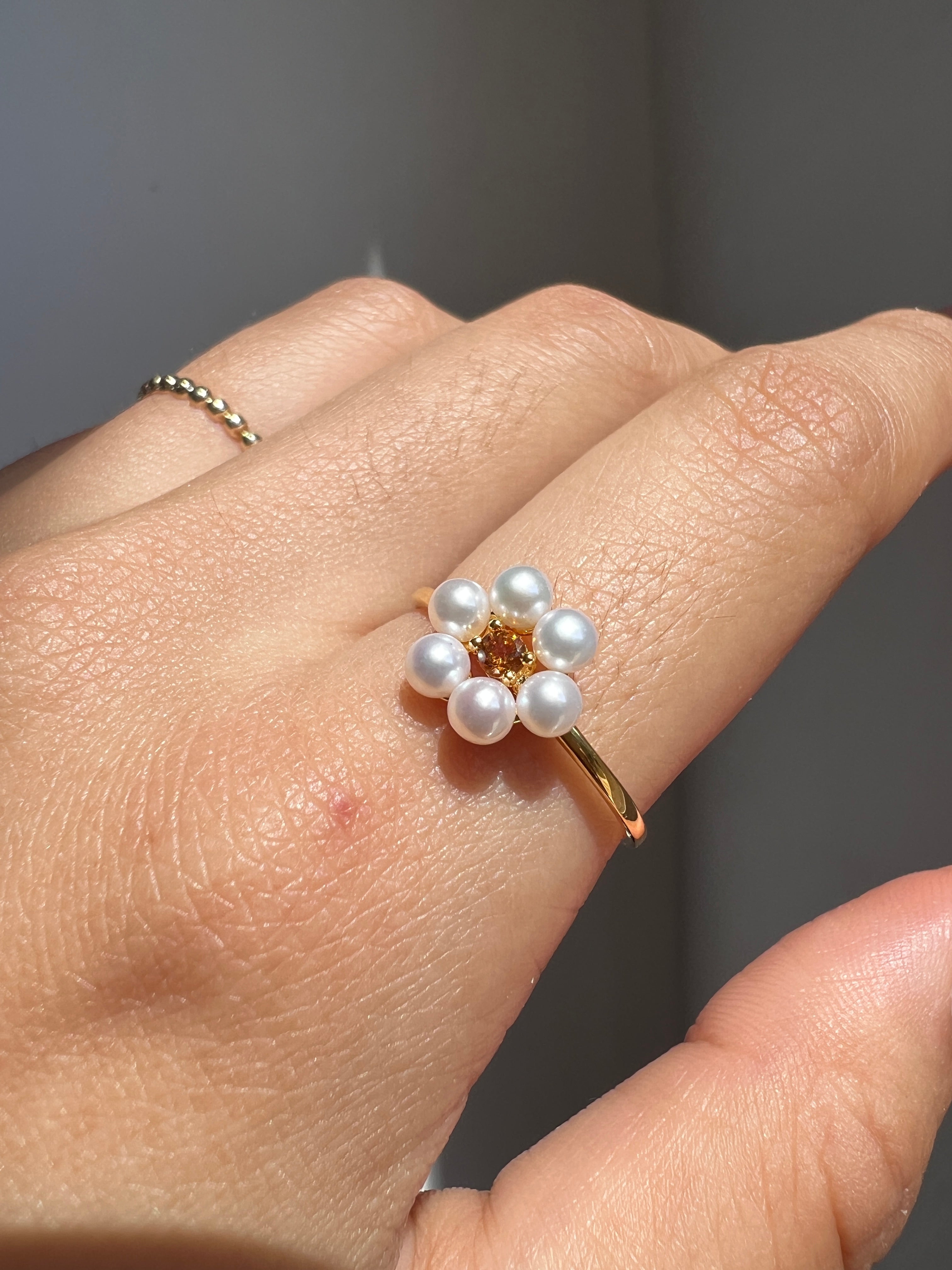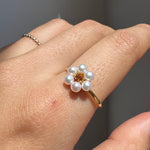 Prepare to be captivated by the remade Daisy Ring, a stunning transformation of our beloved classic. This new iteration combines the enduring charm of the original design with the exquisite beauty of freshwater pearls and the warmth of citrine gemstones. A timeless piece, now elevated to new heights of elegance.