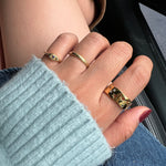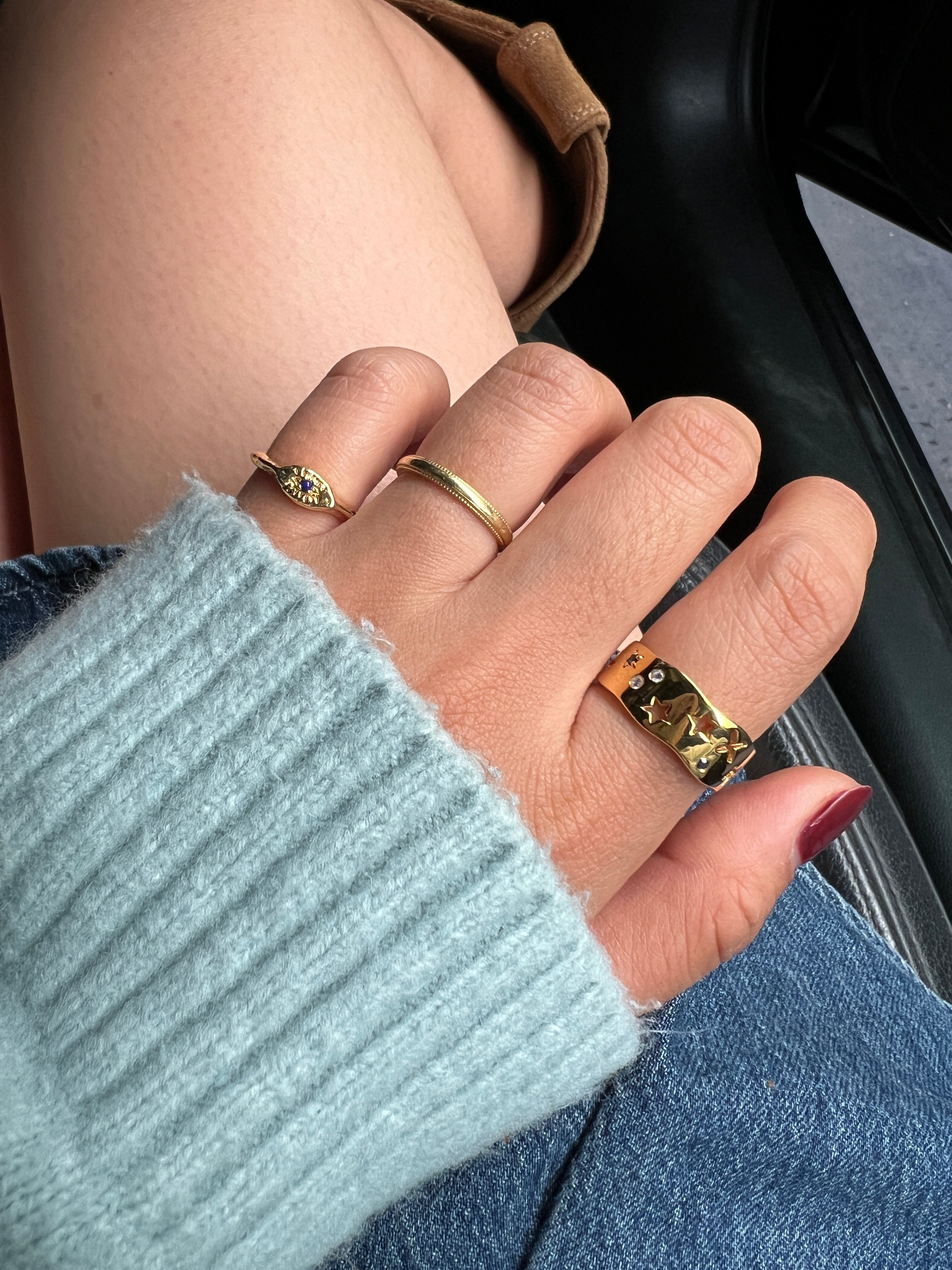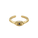 This evil eye ring features a lapis lazuli stone as the eye, bringing both protection and wisdom. Lapis lazuli is known for promoting inner peace and truth, adding an extra layer of meaning to this protective piece. Available in gold vermeil and sterling silver, it’s the perfect blend of style and good vibes to keep your energy safe.